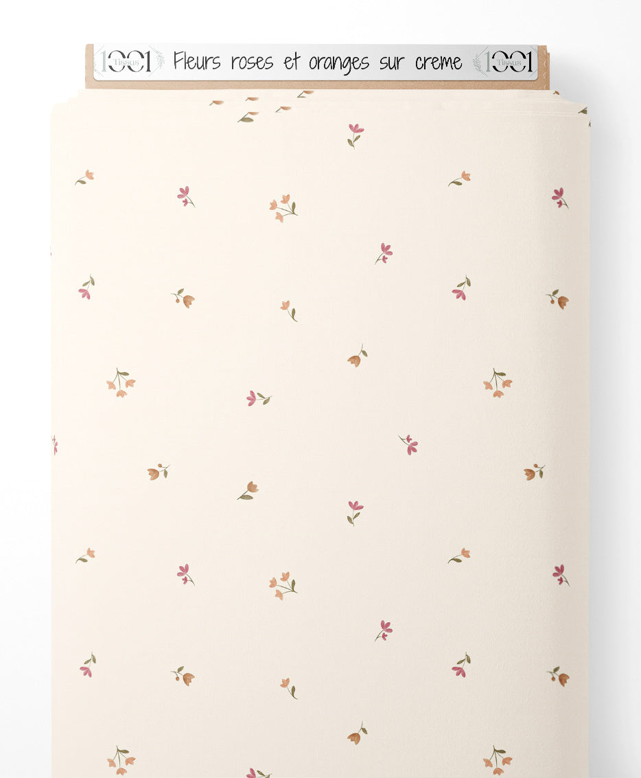 Les fleurs sont délicatement dispersées sur le fond. Les teintes pastel apportent une touche douce et subtile.Les tissus