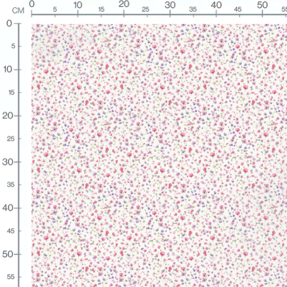Les fleurs varient en taille et en forme, créant un motif délicat. Les nuances de rose et de violet se mélangent harmonieusement. Les feuilles vertes ajoutent une touche de fraîcheur au motif floral.Les tissus