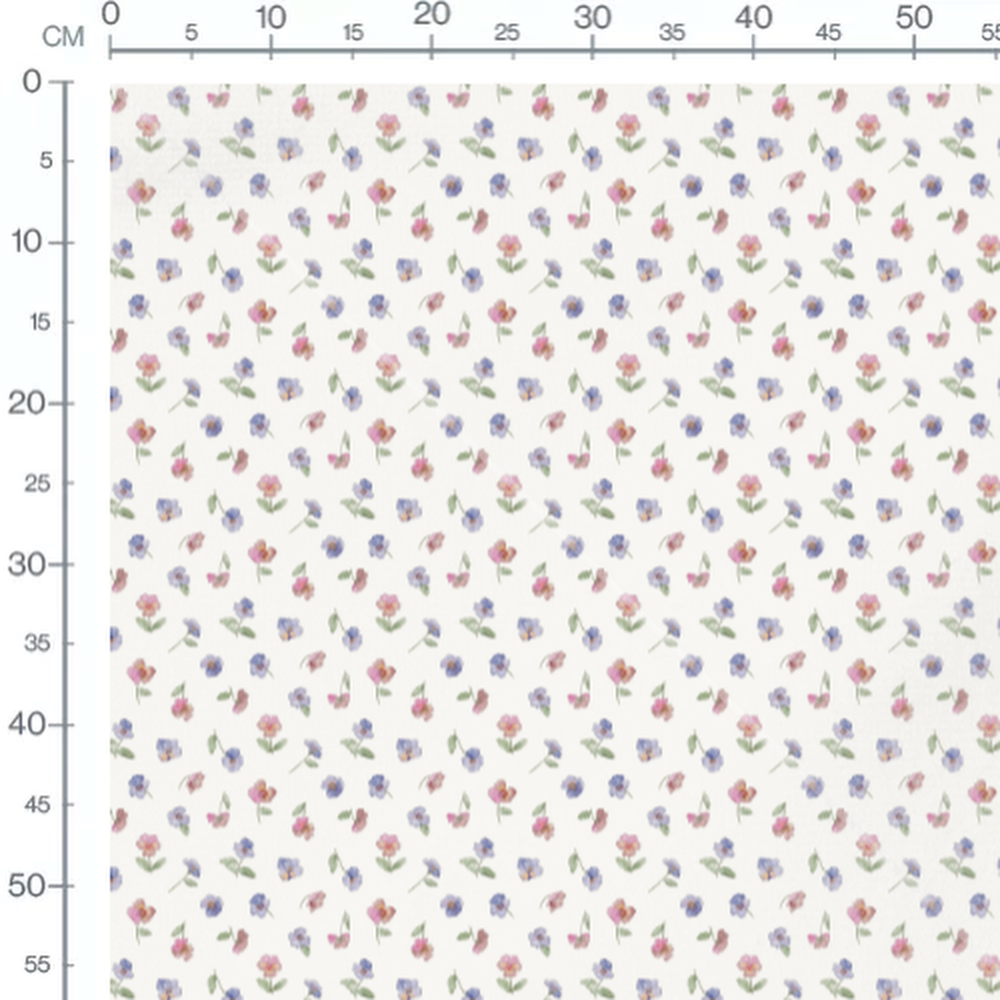 Les fleurs sont délicatement peintes dans des tons pastel. Les nuances de rose et de violet se mélangent harmonieusement. Les feuilles vertes ajoutent une touche de fraîcheur au motif.Les tissus