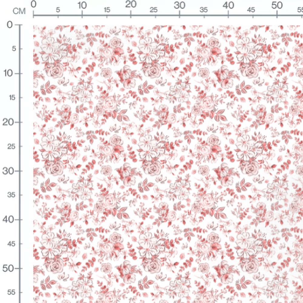 Les fleurs sont entourées de petites feuilles et de pétales délicats. Les motifs floraux incluent des roses et d'autres fleurs stylisées. Les nuances de rose varient du clair au foncé, ajoutant de la profondeur au motif.Les tissus