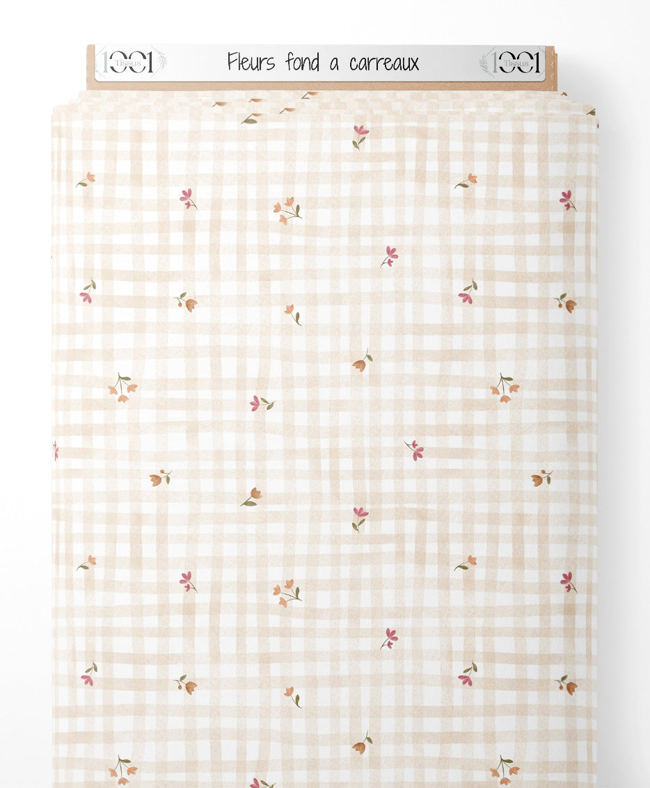 Tissu - Fleurs sur fond à carreaux