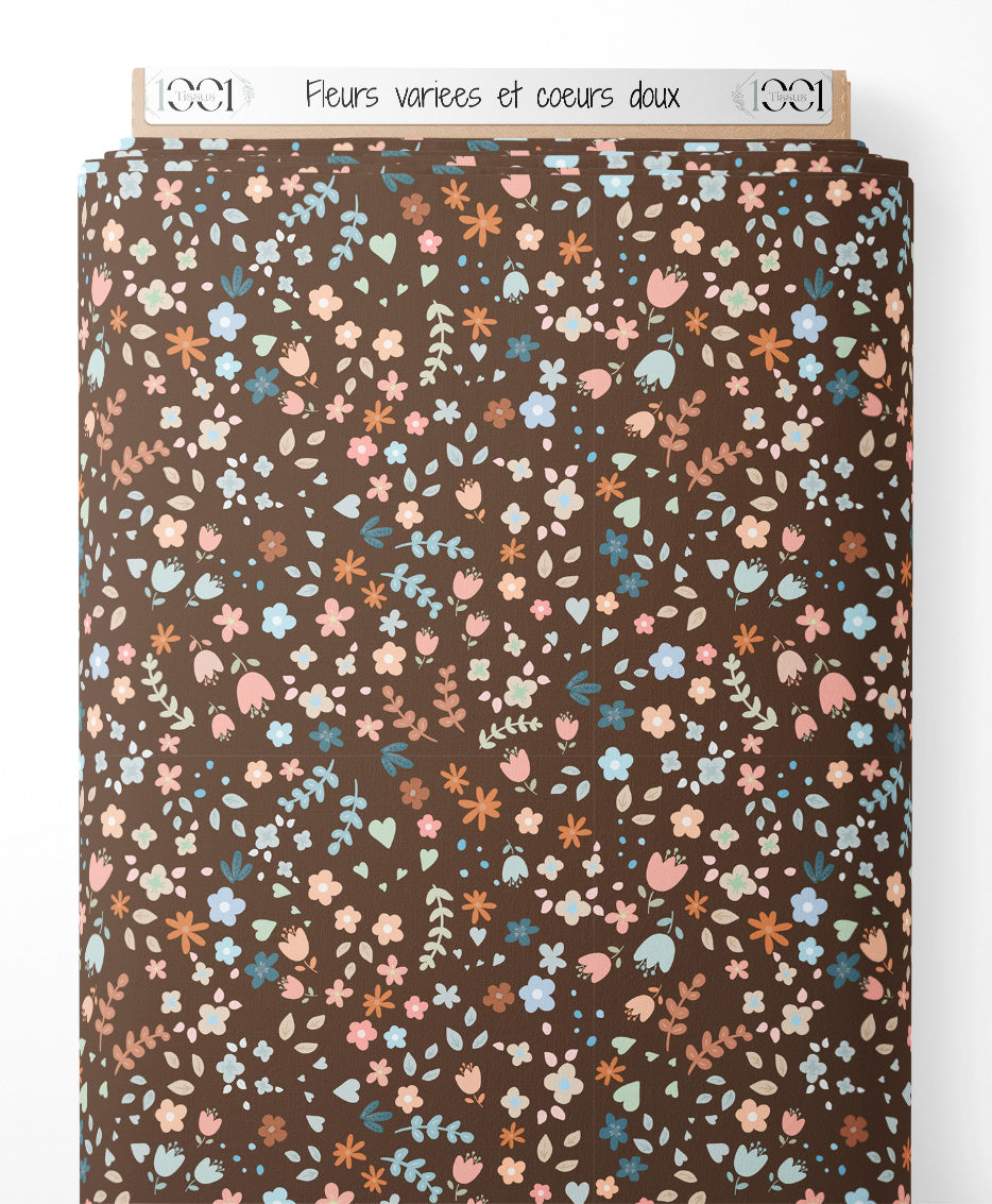 Tissu - Fleurs variées et cœurs doux