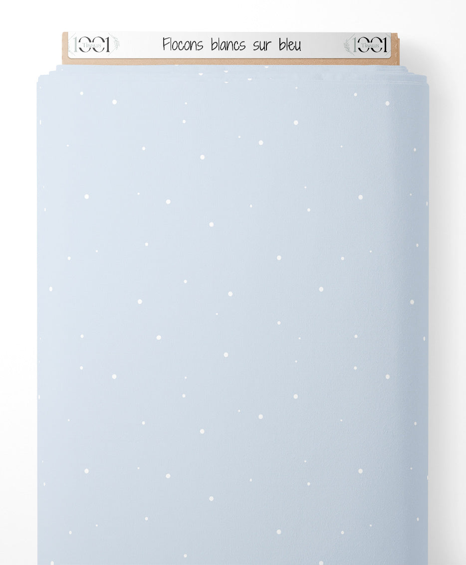 Flocons blancs sur fond bleu clair. Petits points dispersés uniformément.Les tissus