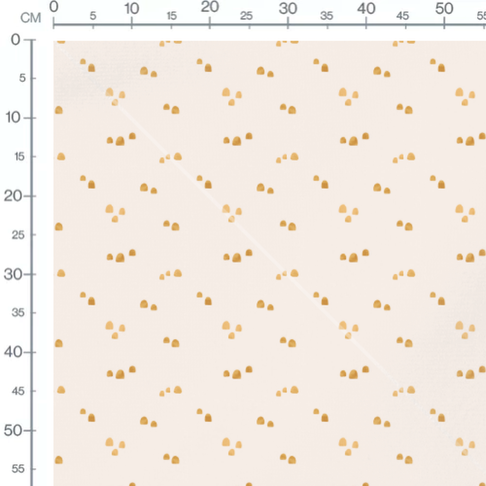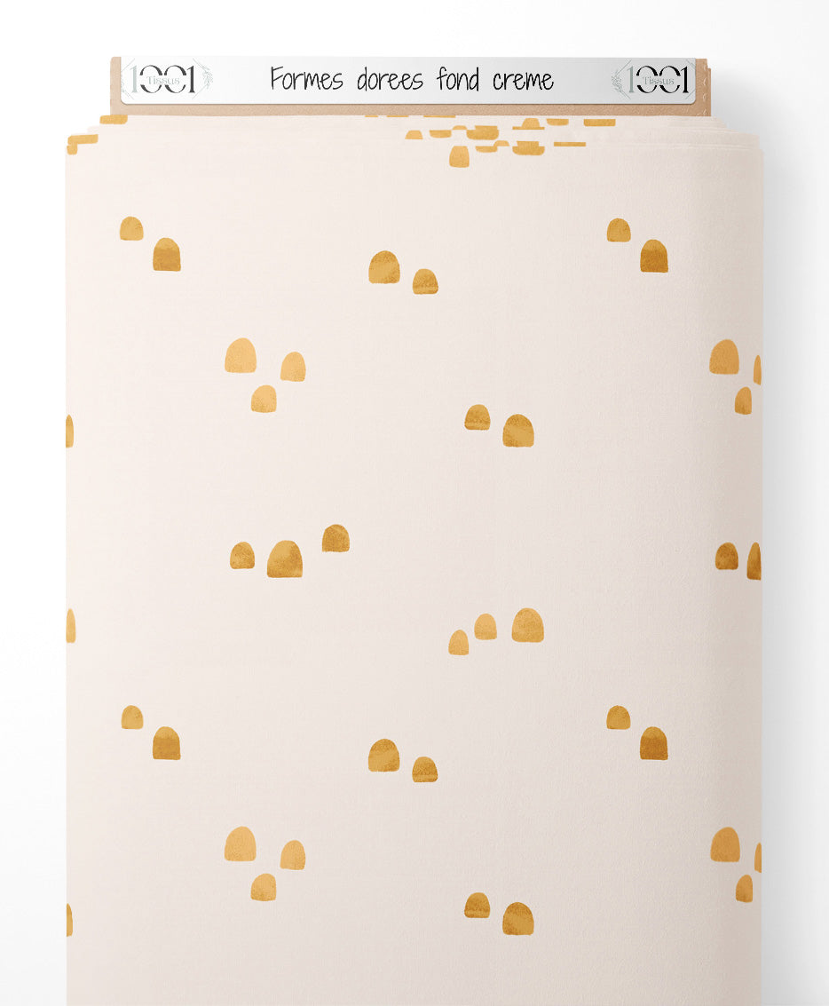 Formes arrondies dorées sur fond crème. Motifs dispersés de manière aléatoire.Les tissus