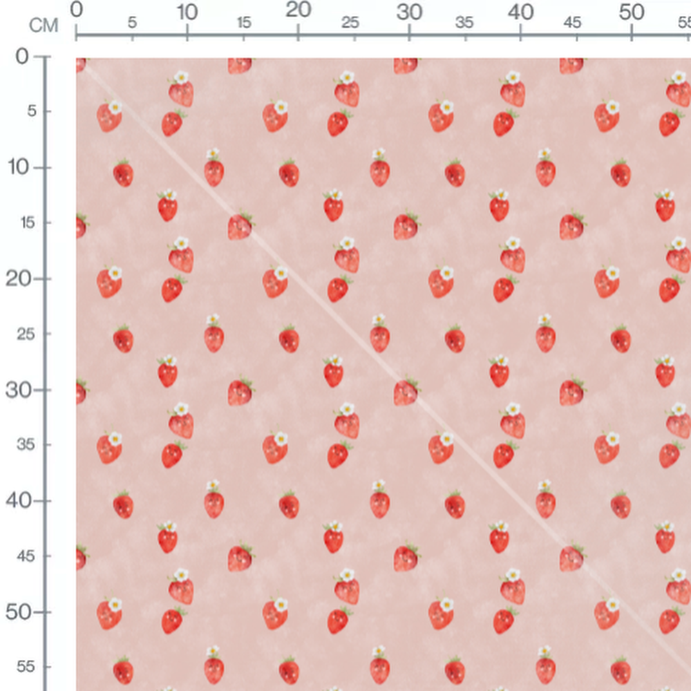Les fraises sont décorées de petites feuilles vertes. Les fleurs blanches ajoutent une touche délicate au motif.Les tissus
