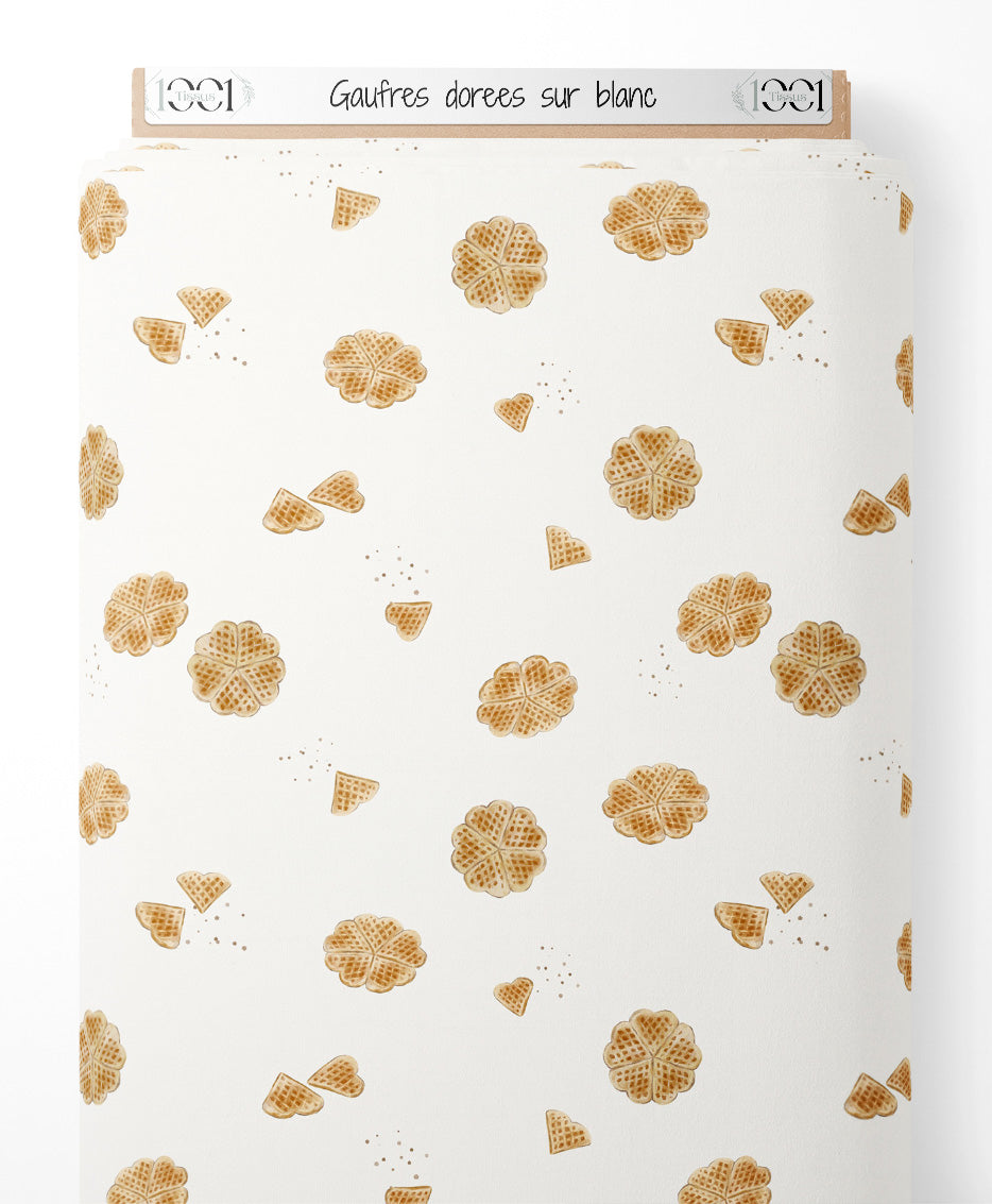 Les gaufres sont de forme ronde et en cœur. Les miettes ajoutent un détail subtil au motif.Les tissus