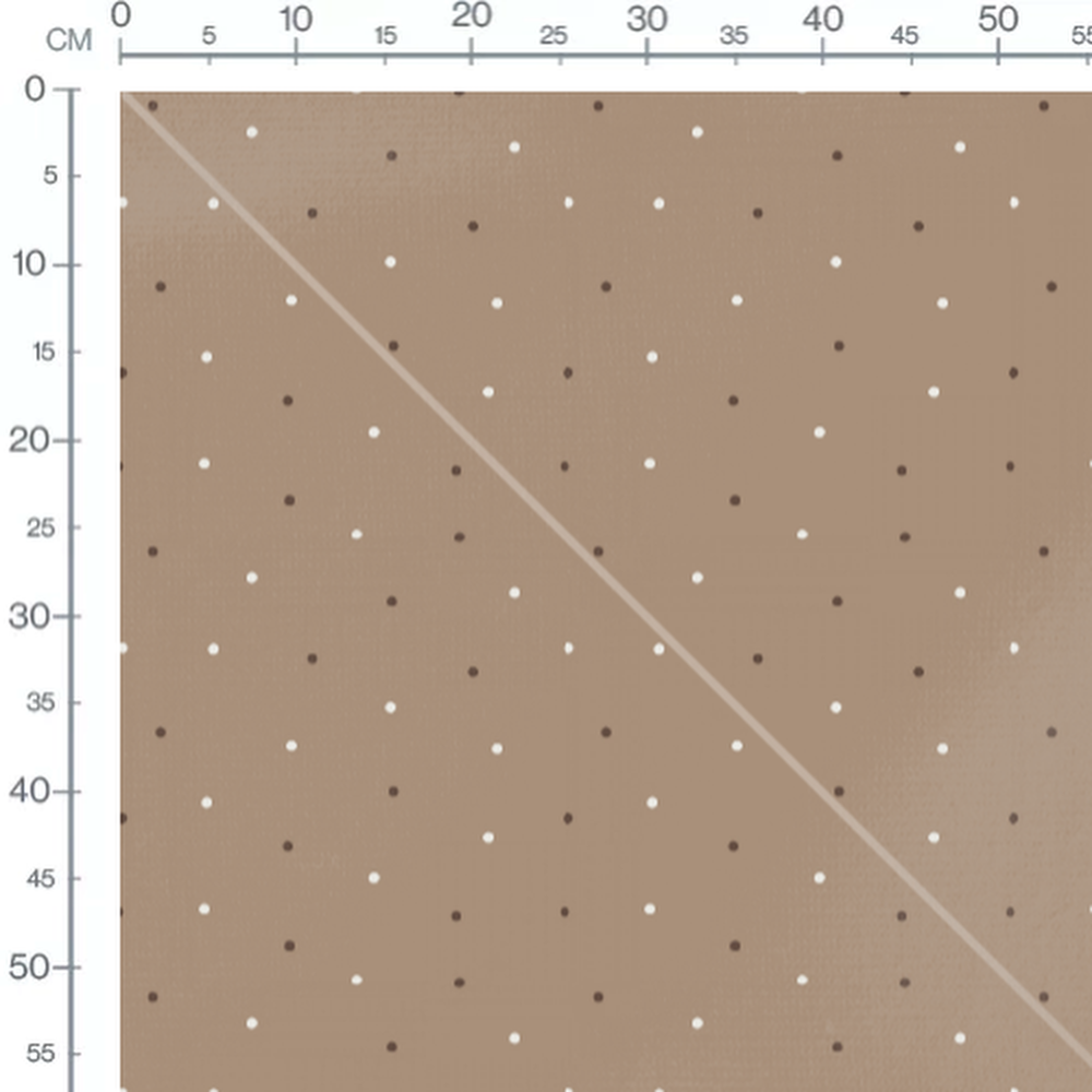 Les pois sont répartis uniformément sur le fond beige. Les couleurs contrastent légèrement avec le fond pour un effet subtil.Les tissus