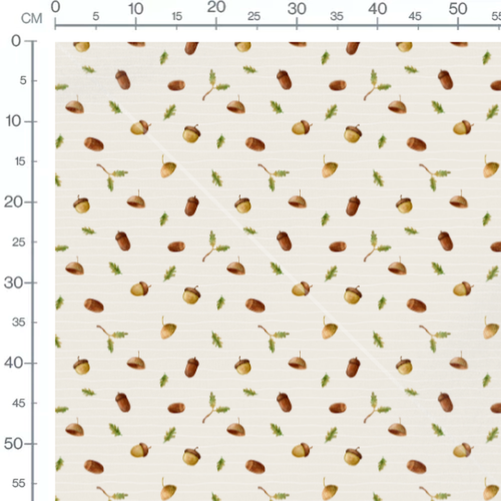 Les glands sont de différentes nuances de marron et de vert. Les feuilles sont petites et de couleur verte, ajoutant une touche de fraîcheur au motif.Les tissus
