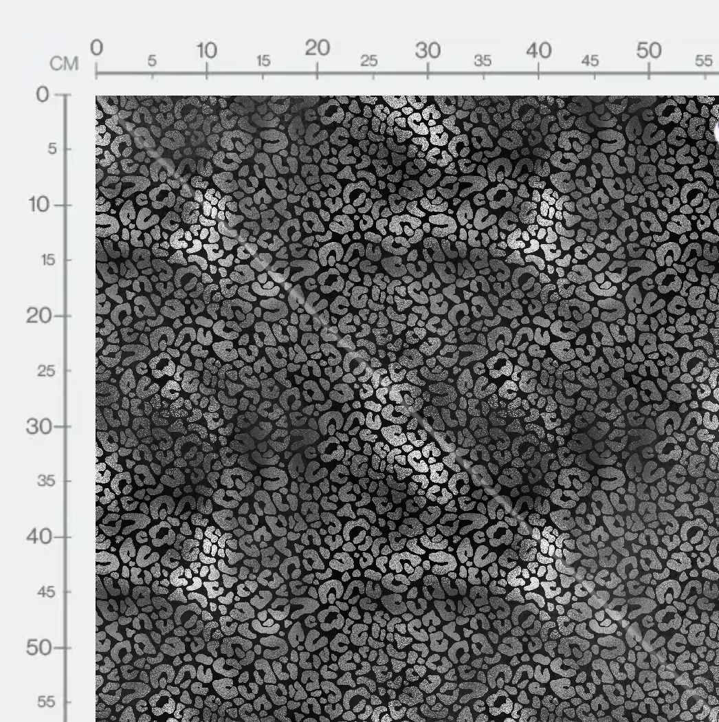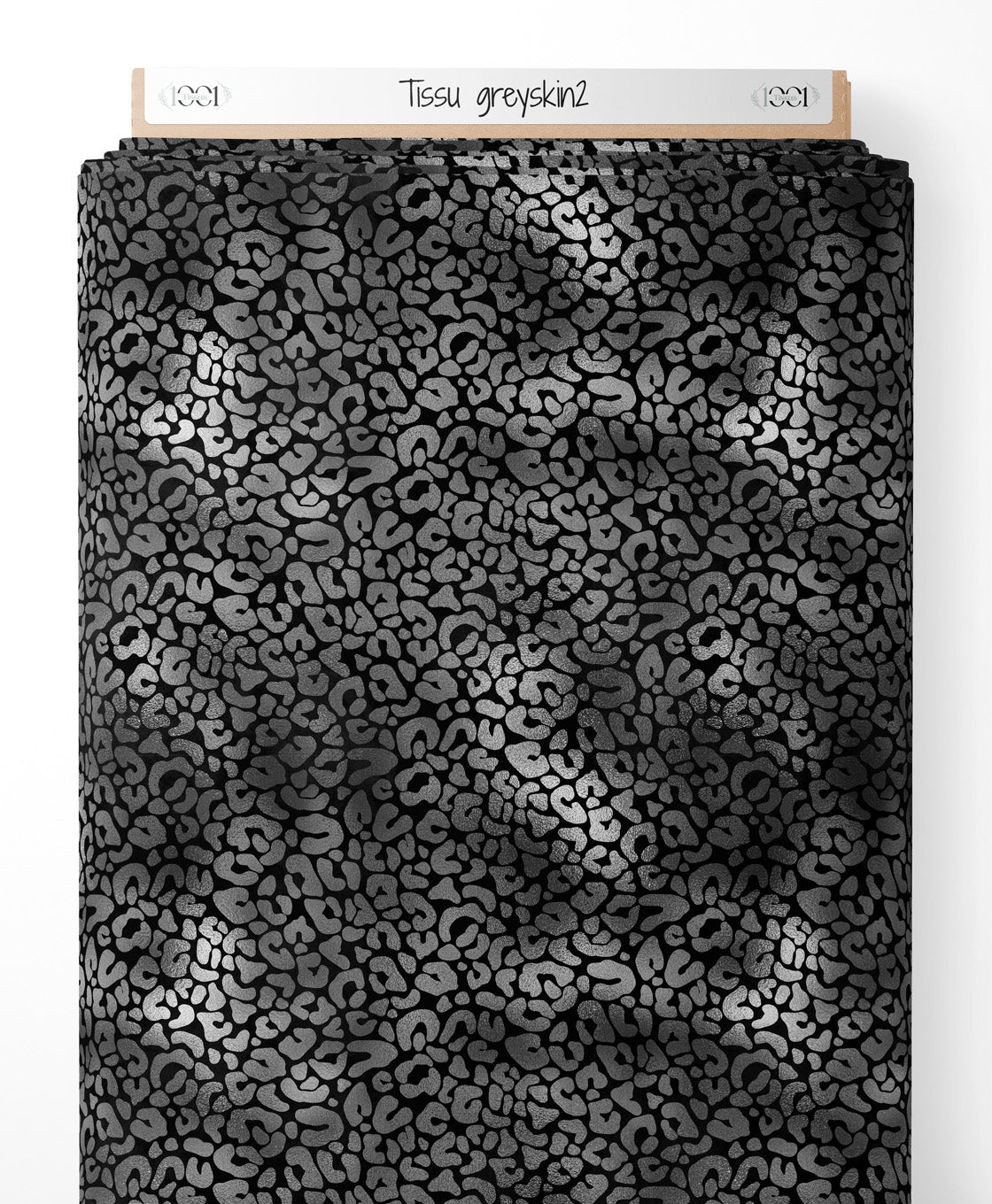 Motif tacheté noir sur fond gris foncé. Tissu avec effet de texture métallique. Les tissus