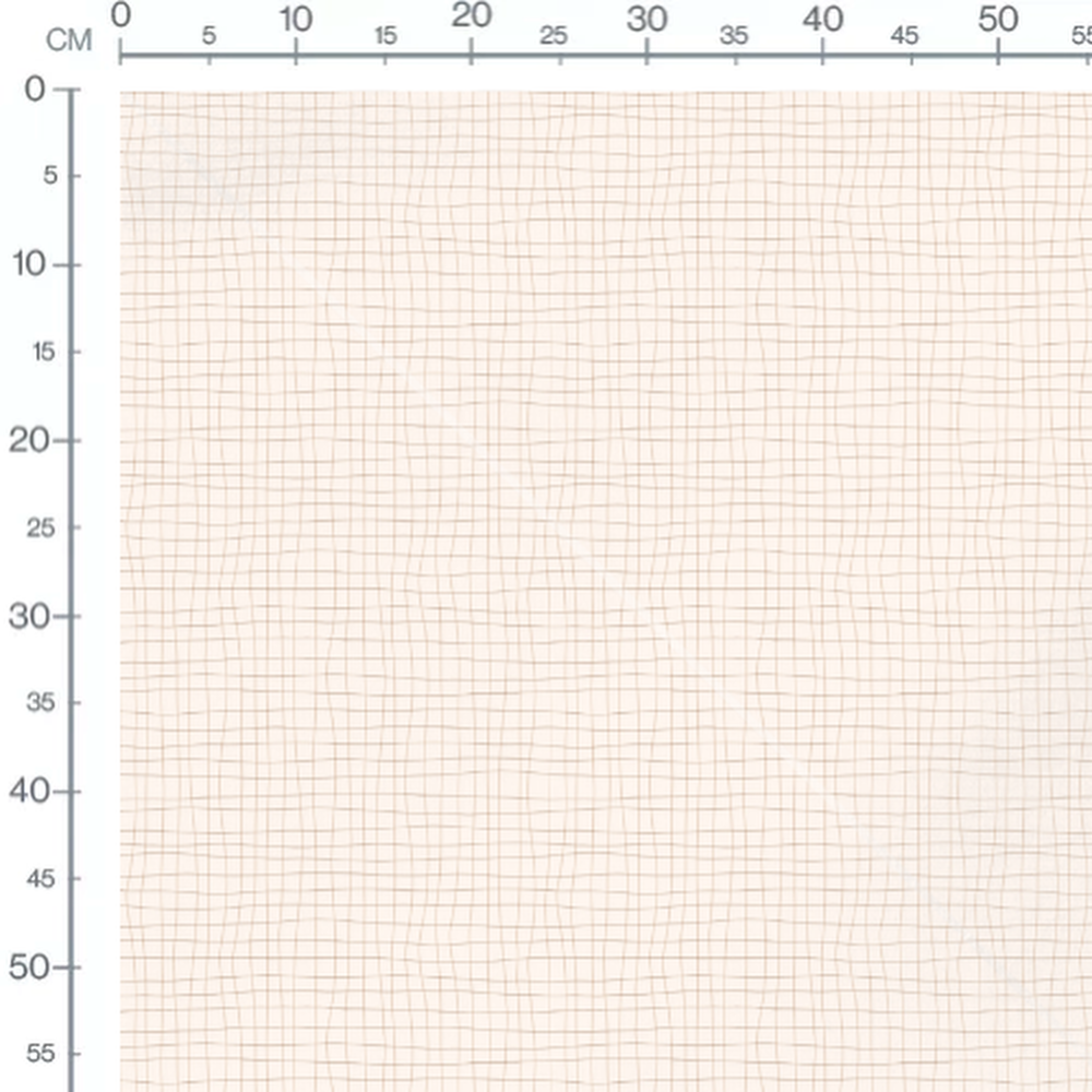 Les lignes forment une grille irrégulière sur toute la surface. Le contraste entre le beige des lignes et le fond blanc crée un effet visuel subtil.Les tissus
