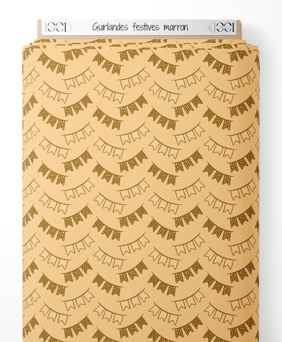 Tissu - Guirlandes festives marron