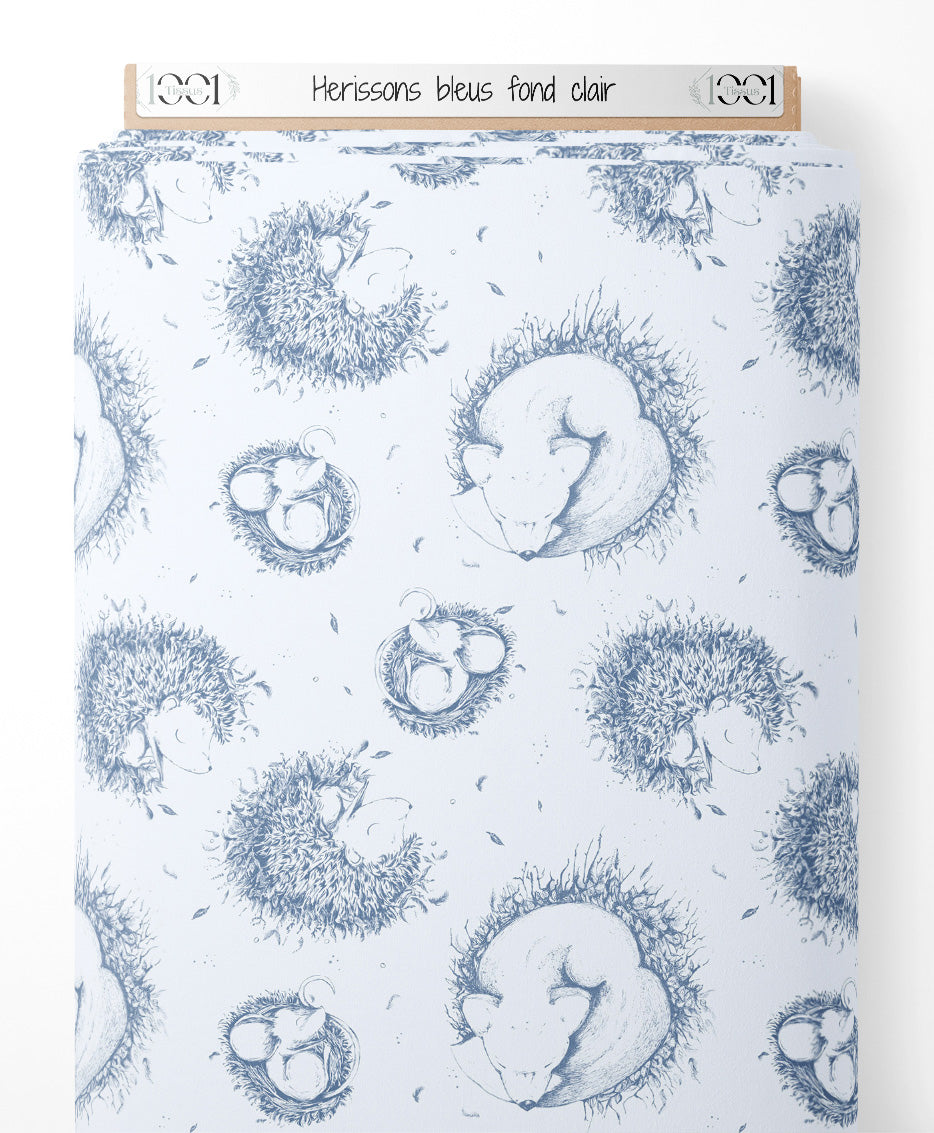 Tissu - Hérissons bleus sur fond clair