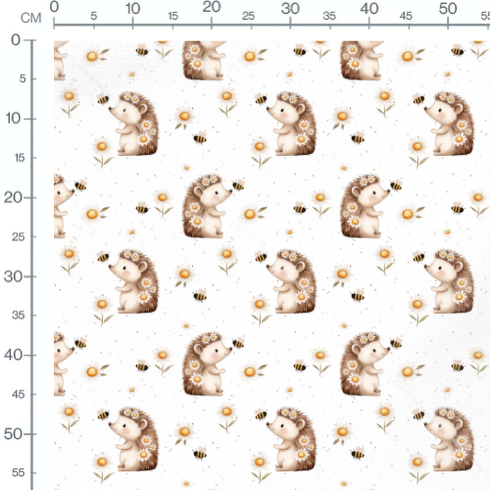 Tissu - Hérissons et abeilles fleuris