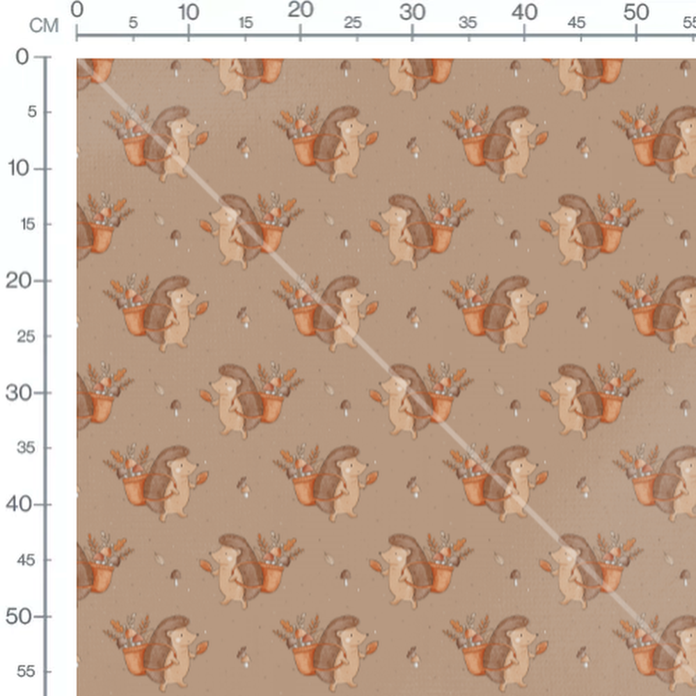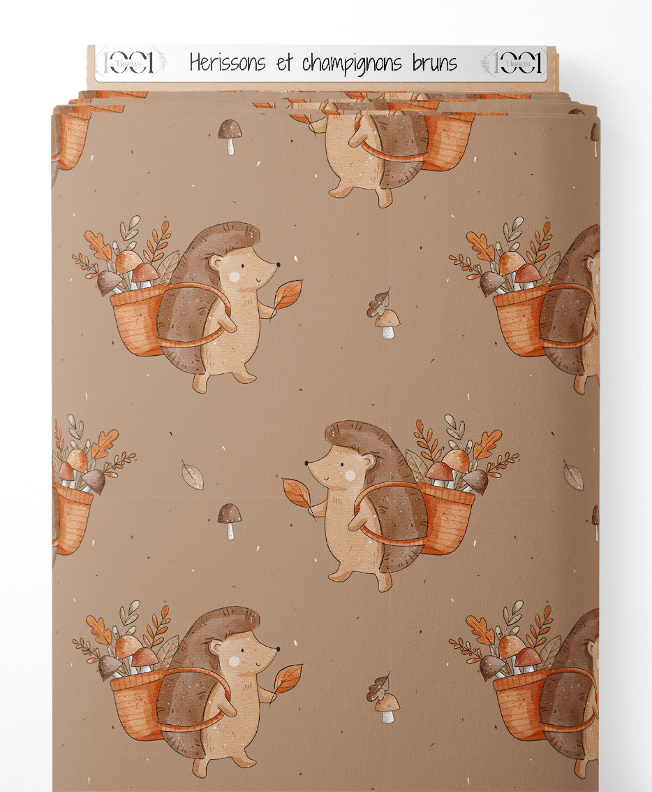 Tissu - Hérissons et champignons bruns