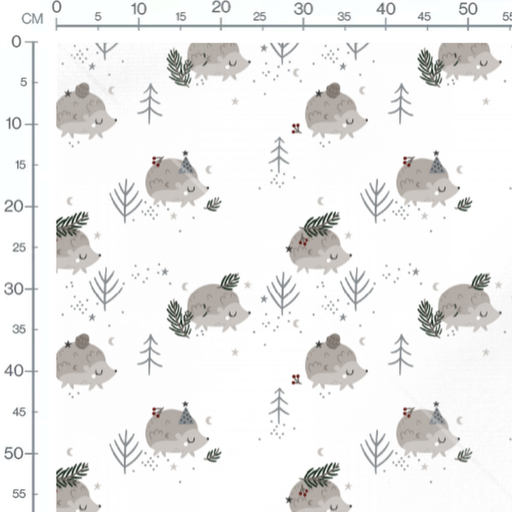 Tissu - Hérissons et sapins gris