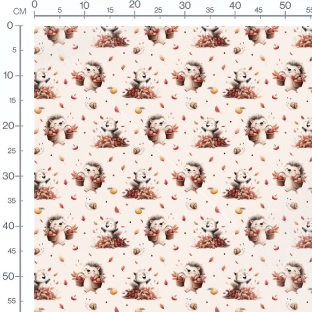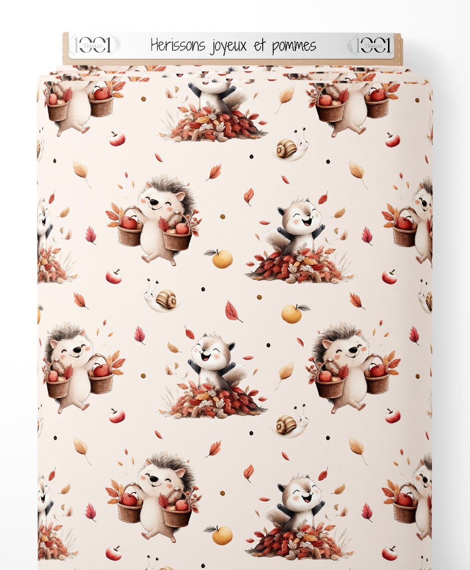 Tissu - Hérissons joyeux et pommes