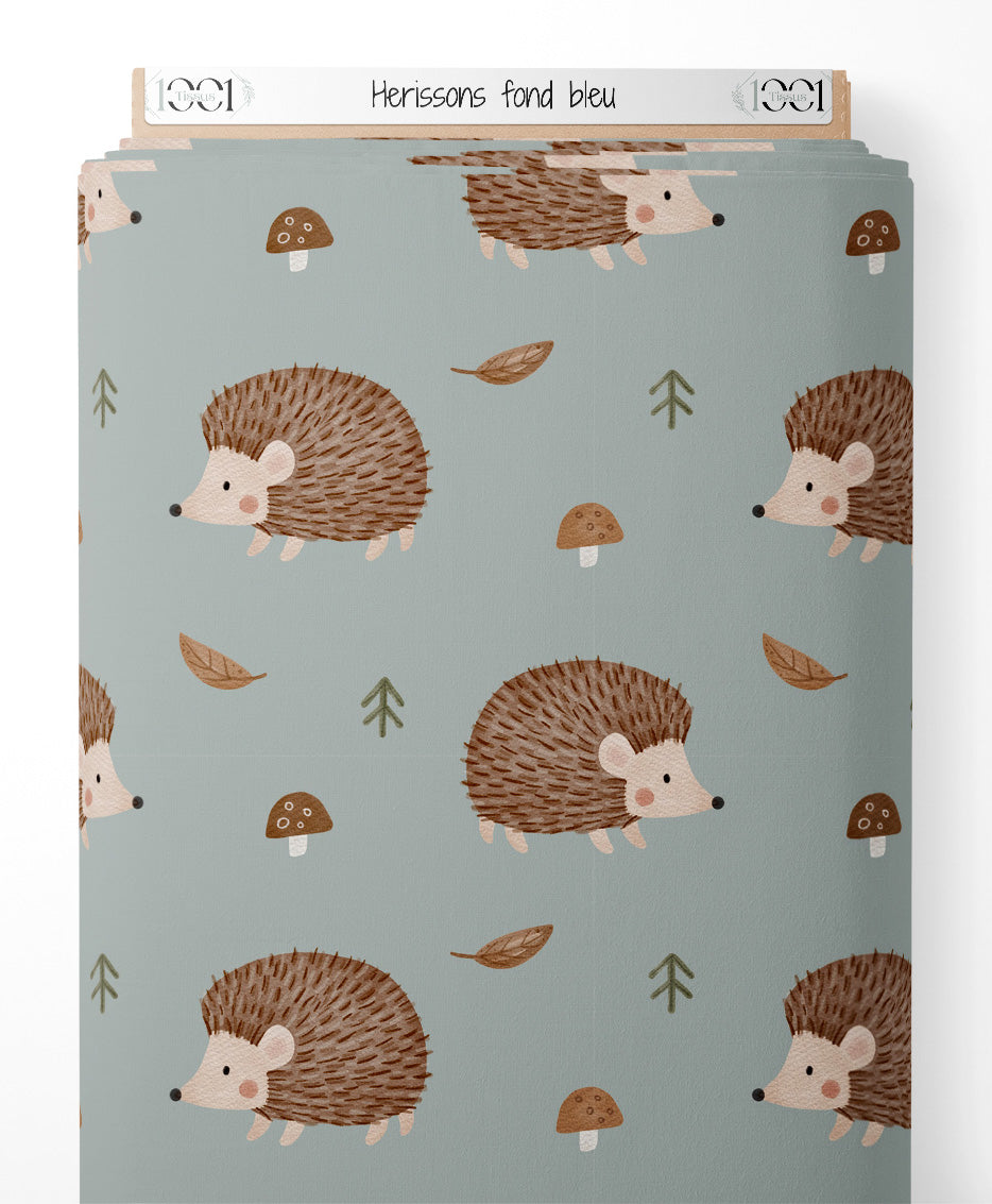 Tissu - Hérissons sur fond bleu