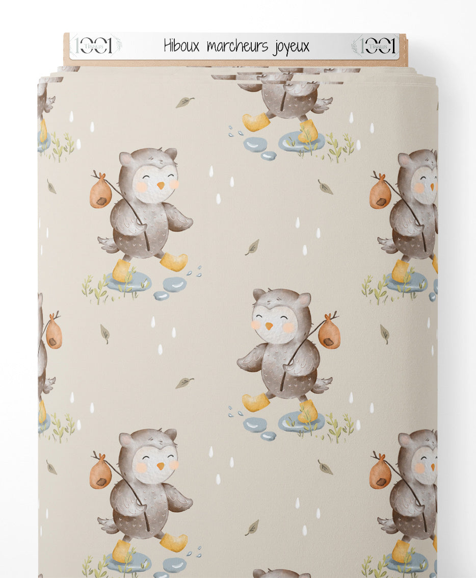 Tissu - Hiboux marcheurs joyeux