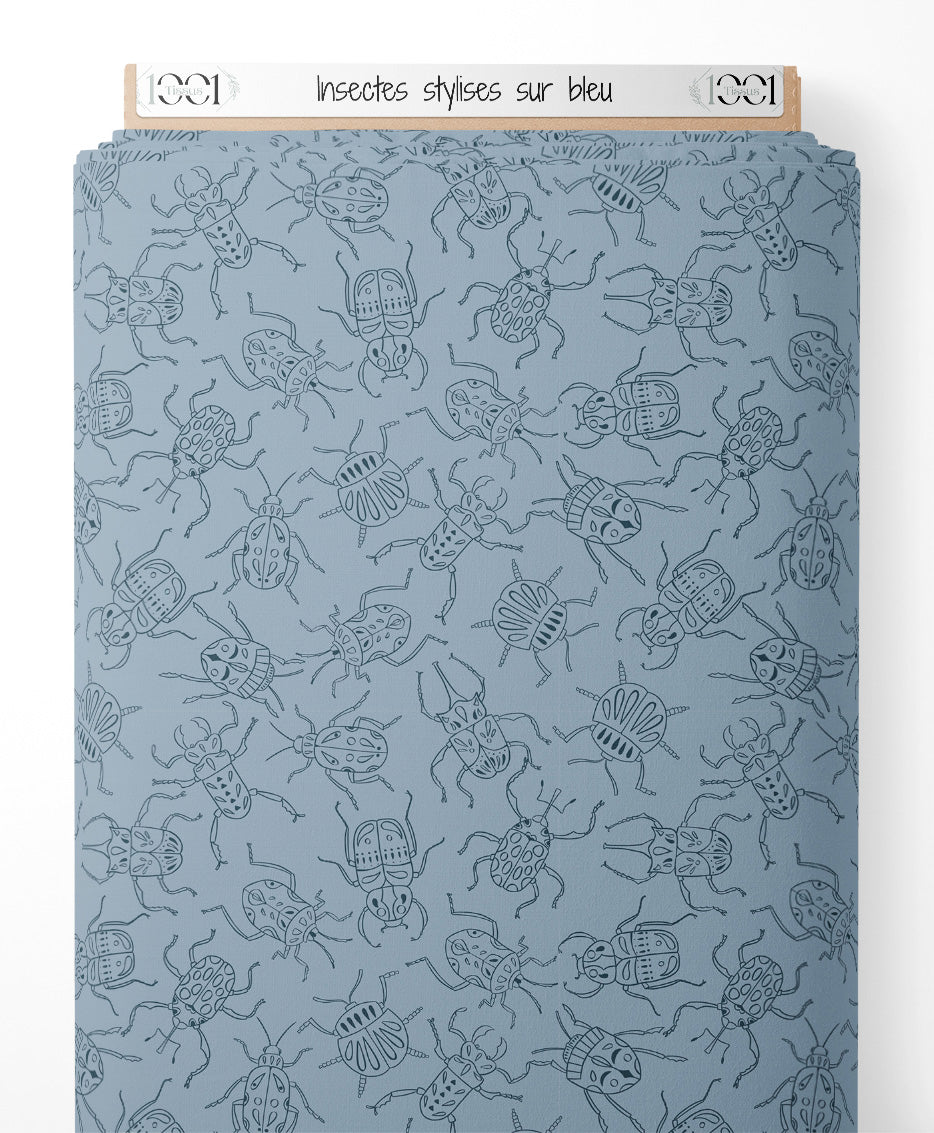 Tissu - Insectes stylisés sur bleu