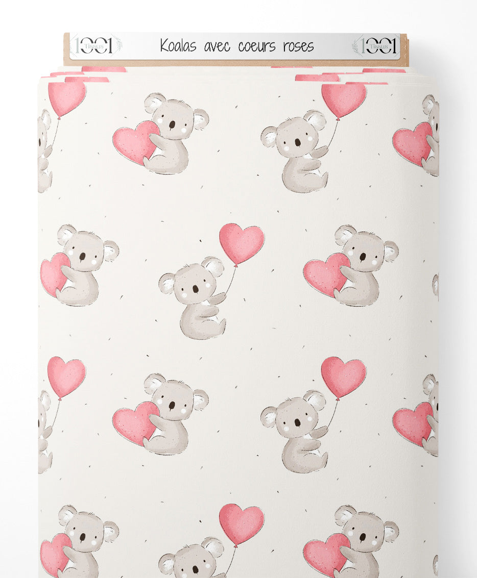 Tissu - Koalas avec cœurs roses