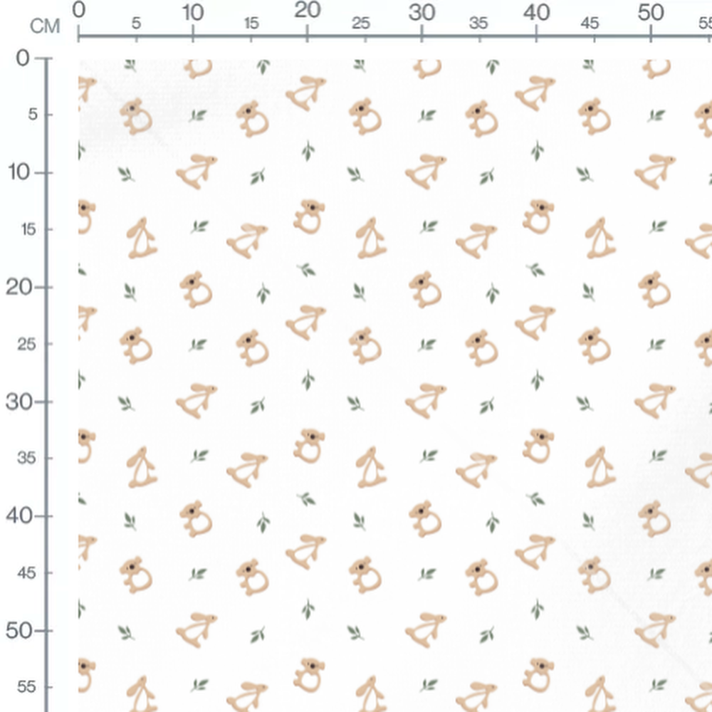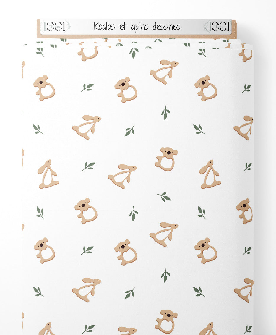 Les koalas et les lapins sont dessinés de manière simple et stylisée. Les feuilles vertes ajoutent une touche naturelle au motif.Les tissus