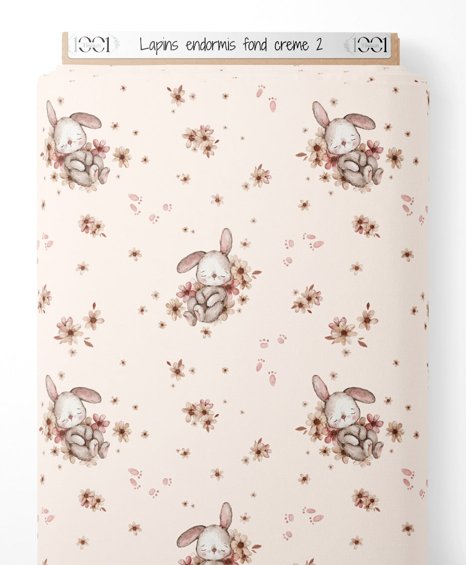 Tissu - Lapins endormis sur fond crème 2