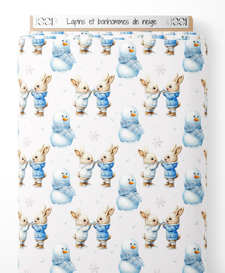 Tissu - Lapins et bonhommes de neige
