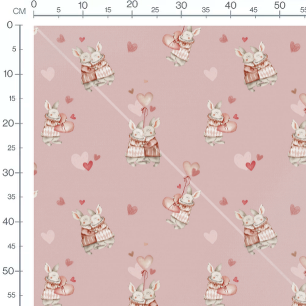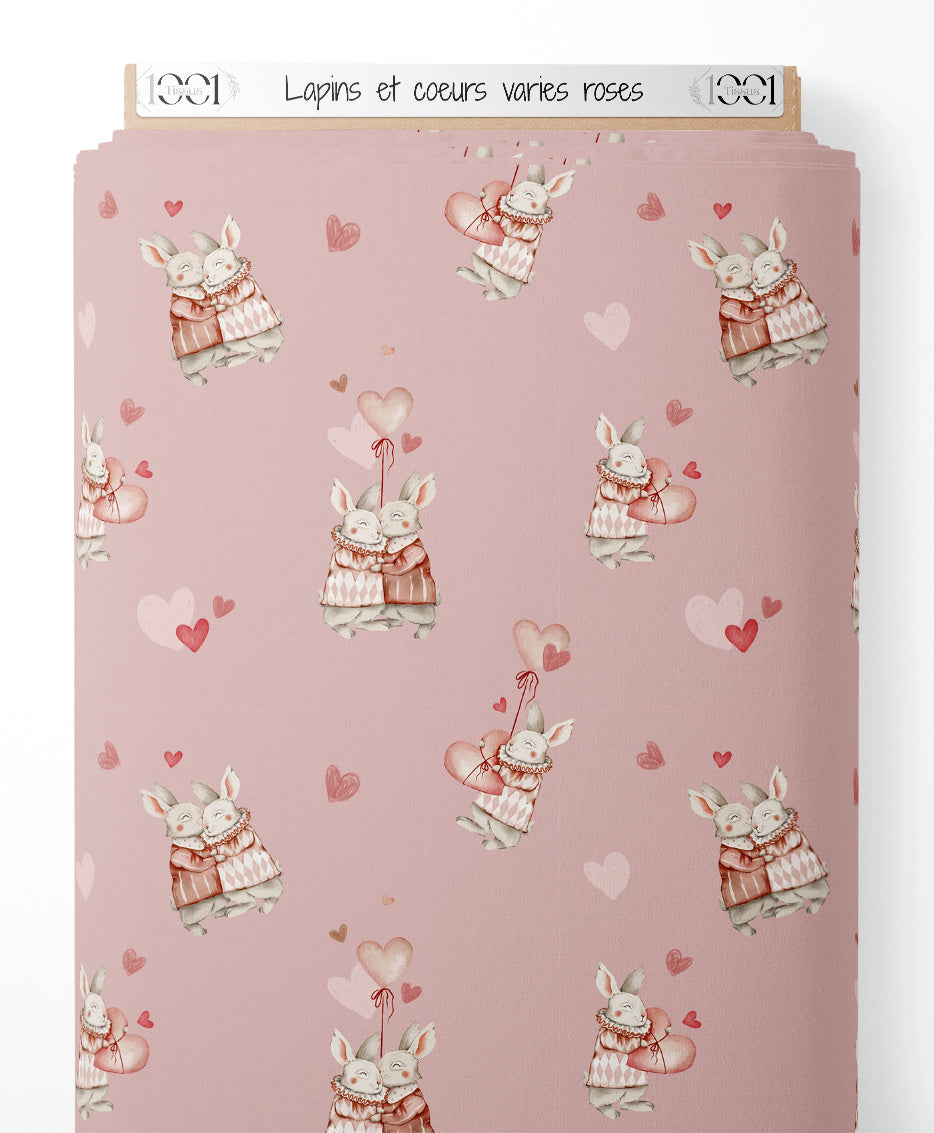 Tissu - Lapins et cœurs variés roses
