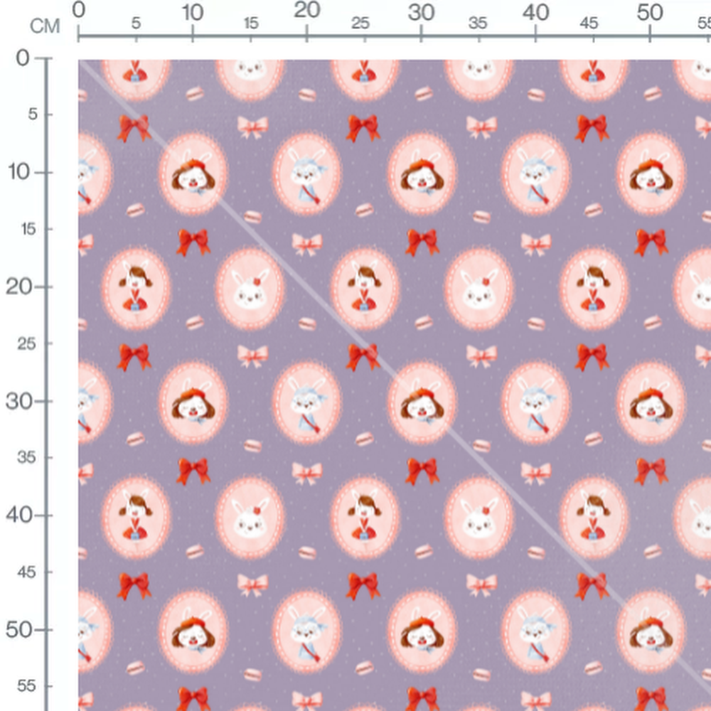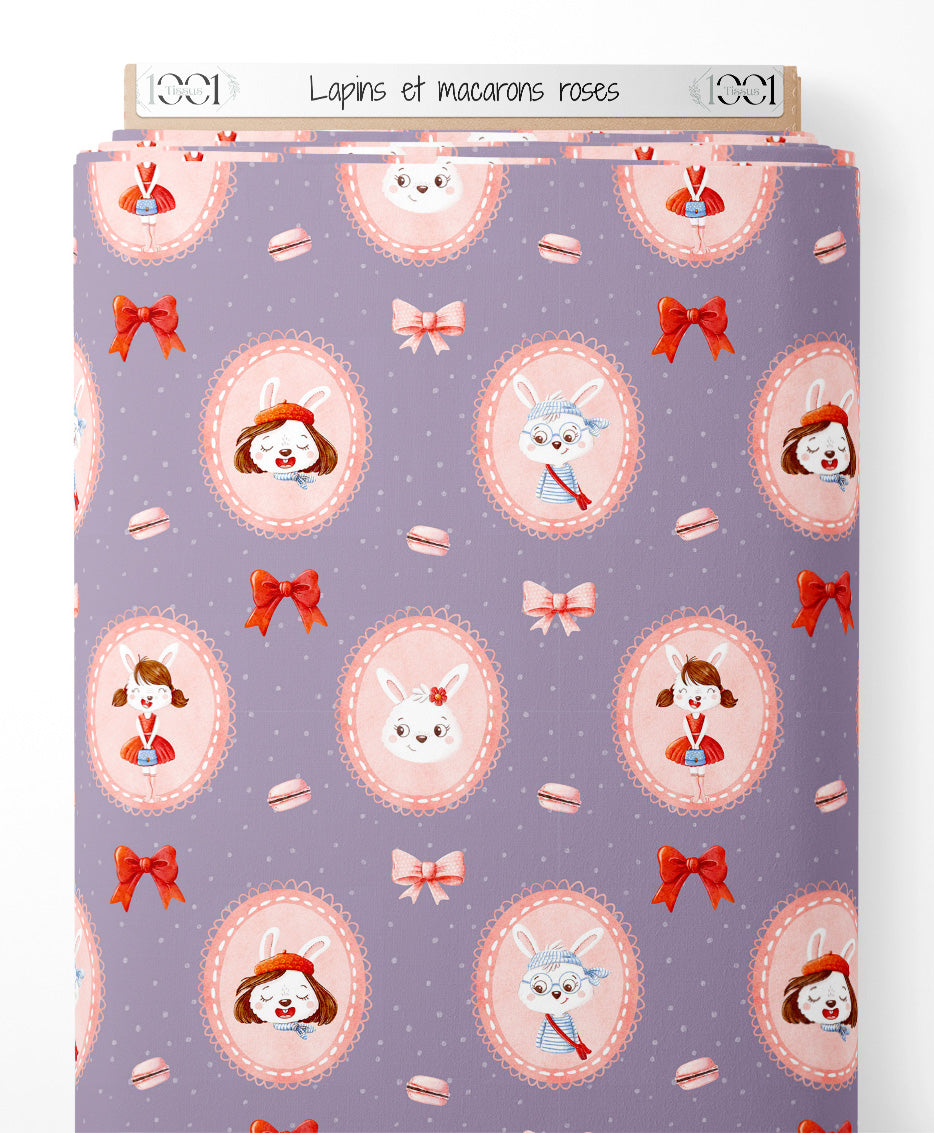 Tissu - Lapins et macarons roses