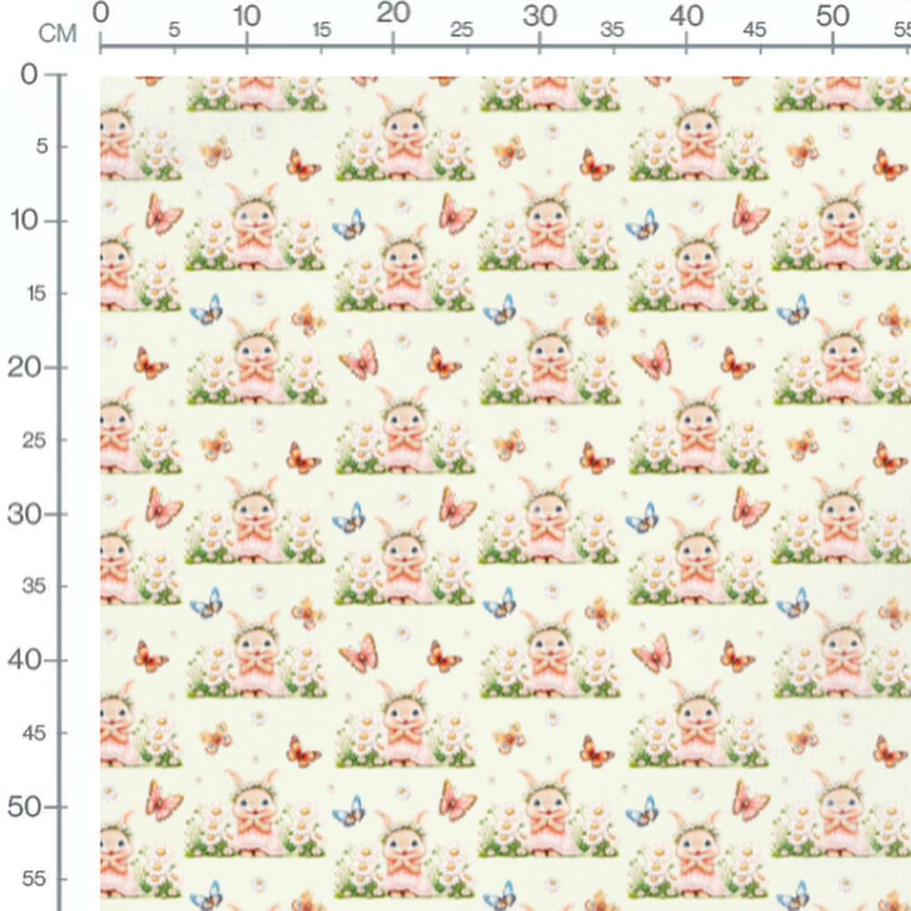 Tissu - Lapins et marguerites crème