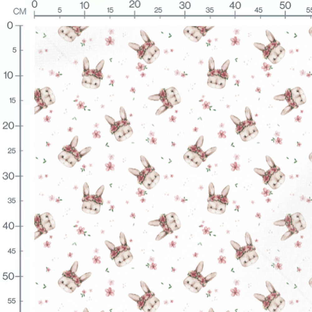 Tissu - Lapins fleuris sur fond blanc 2