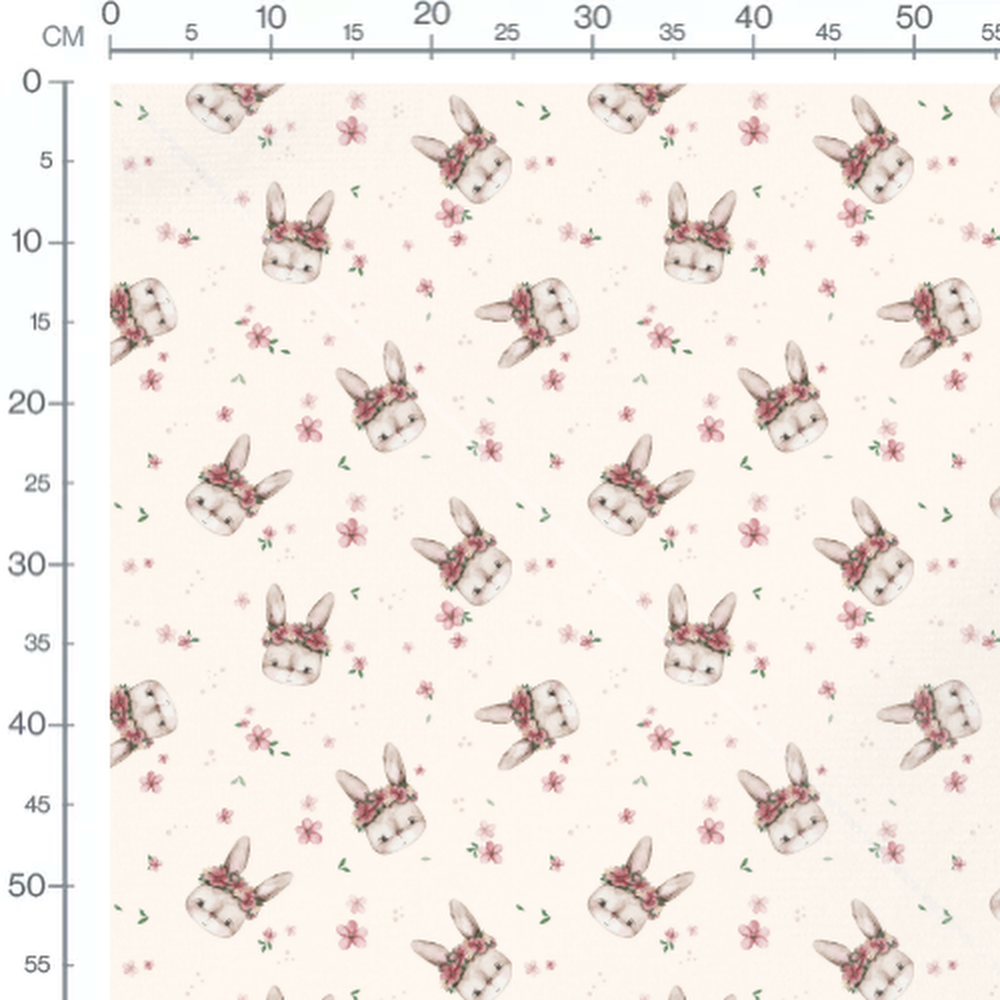 Tissu - Lapins fleuris sur fond crème