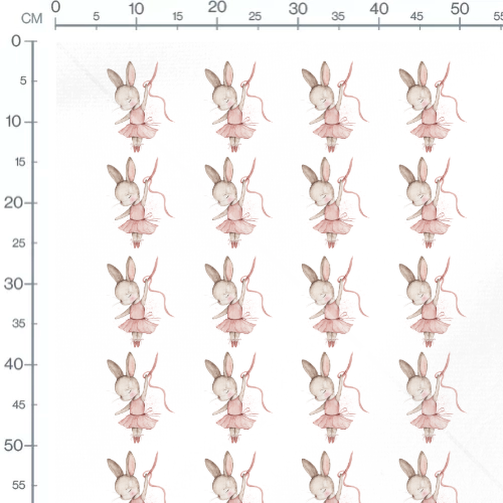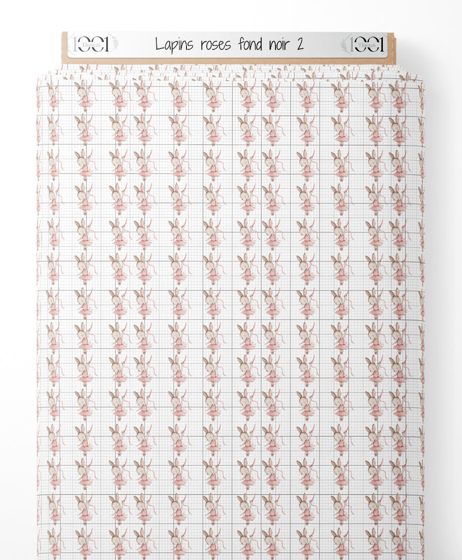 Les lapins sont entourés de fleurs roses et blanches. Les détails floraux ajoutent une touche de douceur au motif.Les tissus