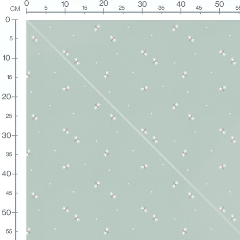 Les libellules ont des ailes délicates et sont réparties sur le fond. Les points blancs ajoutent un élément de contraste subtil.Les tissus