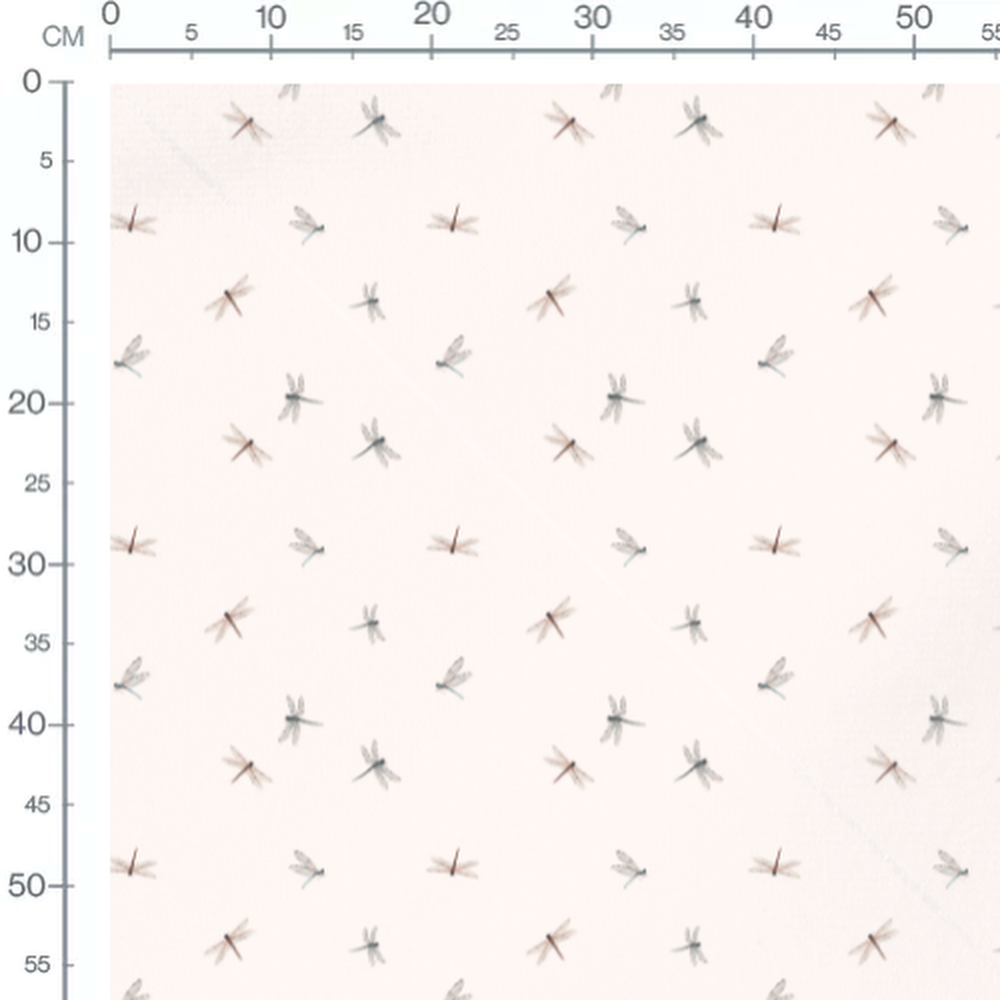 Les libellules sont dispersées de manière aléatoire sur le fond. Leurs ailes sont délicatement détaillées avec des nuances subtiles. Le fond beige met en valeur la finesse des insectes.Les tissus