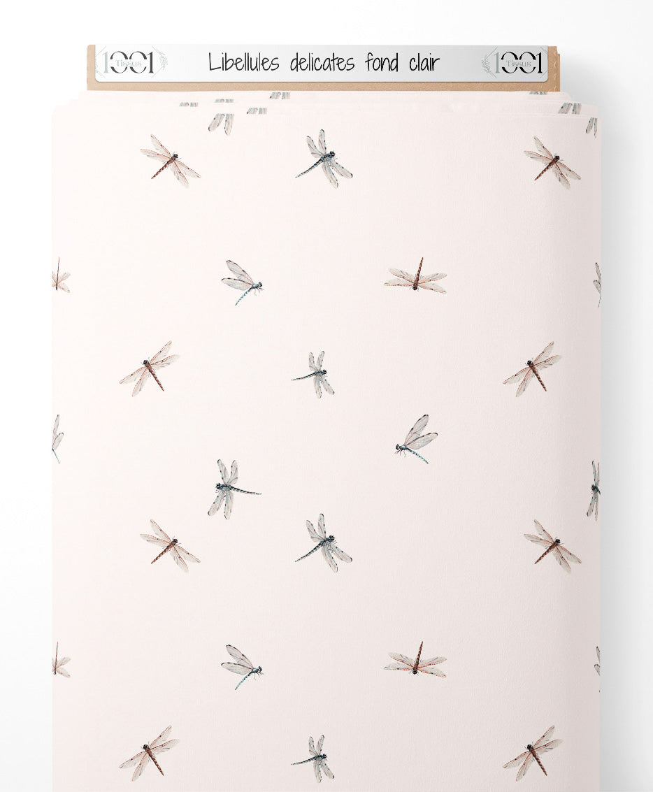 Tissu - Libellules délicates sur fond clair