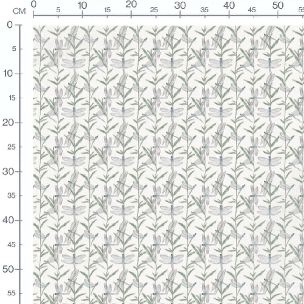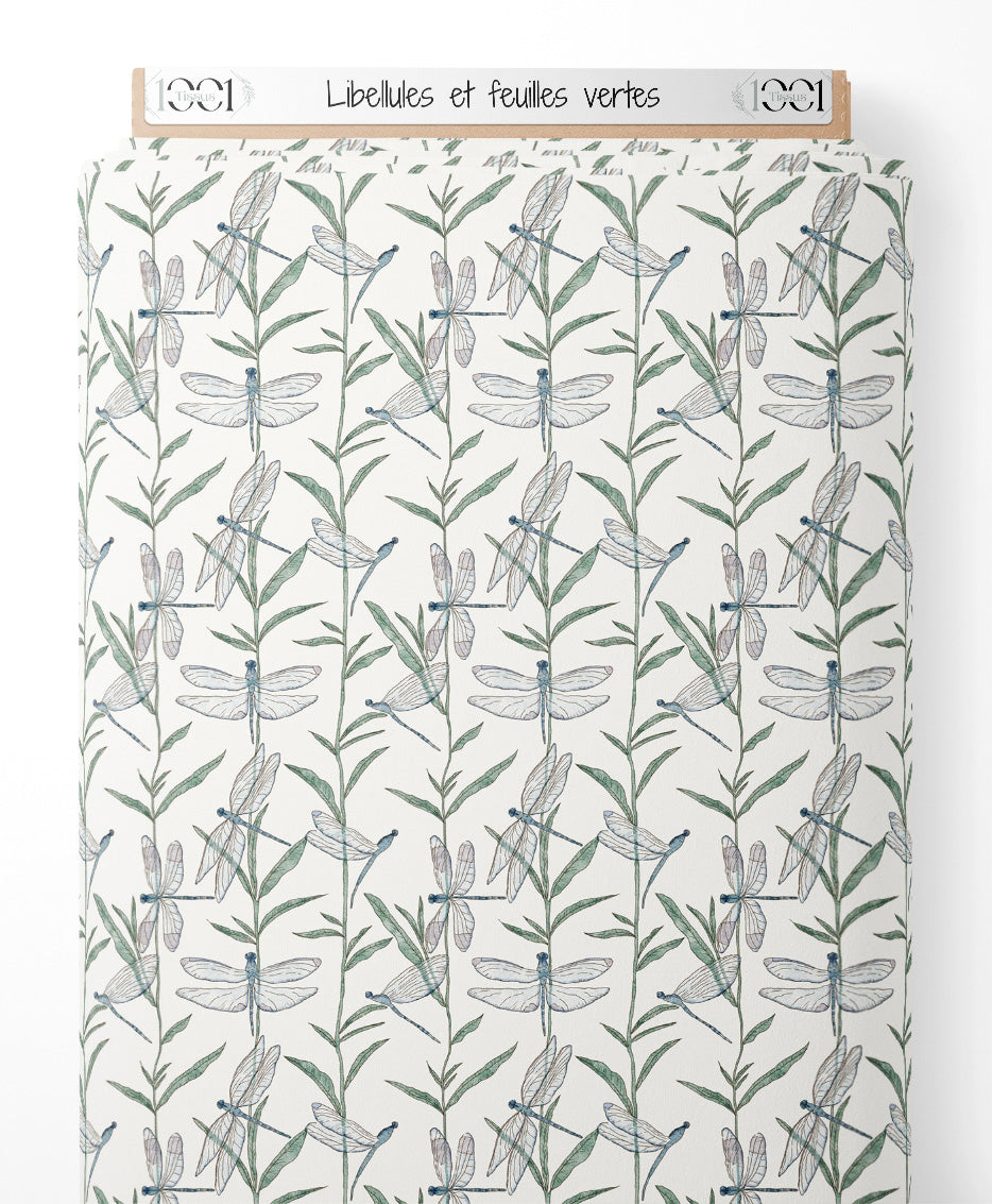 Tissu - Libellules et feuilles vertes
