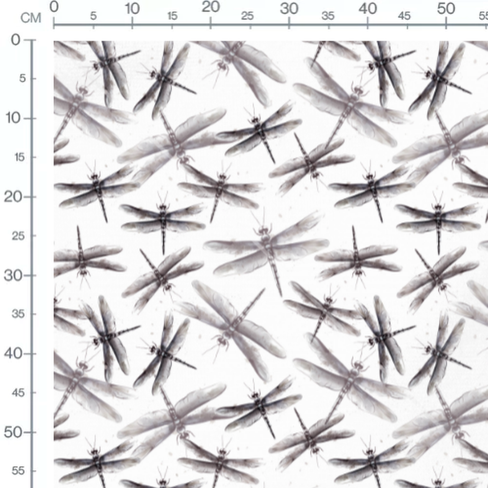 Les libellules présentent des nuances de gris variées. Le fond blanc met en valeur les détails des ailes et du corps des insectes.Les tissus