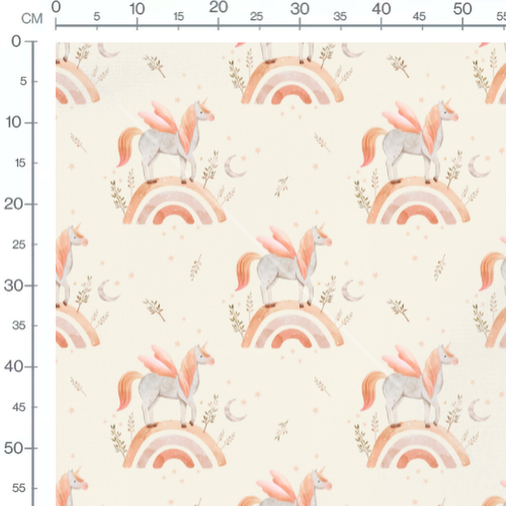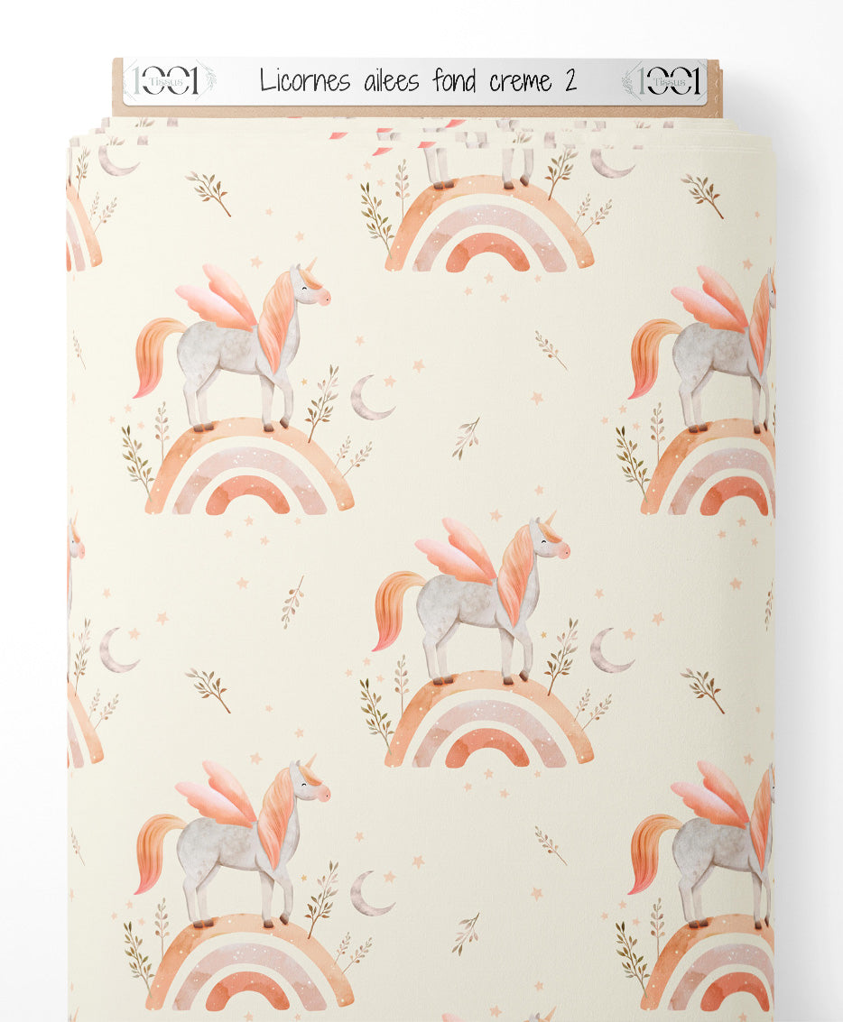 Tissu - Licornes ailées sur fond crème 2