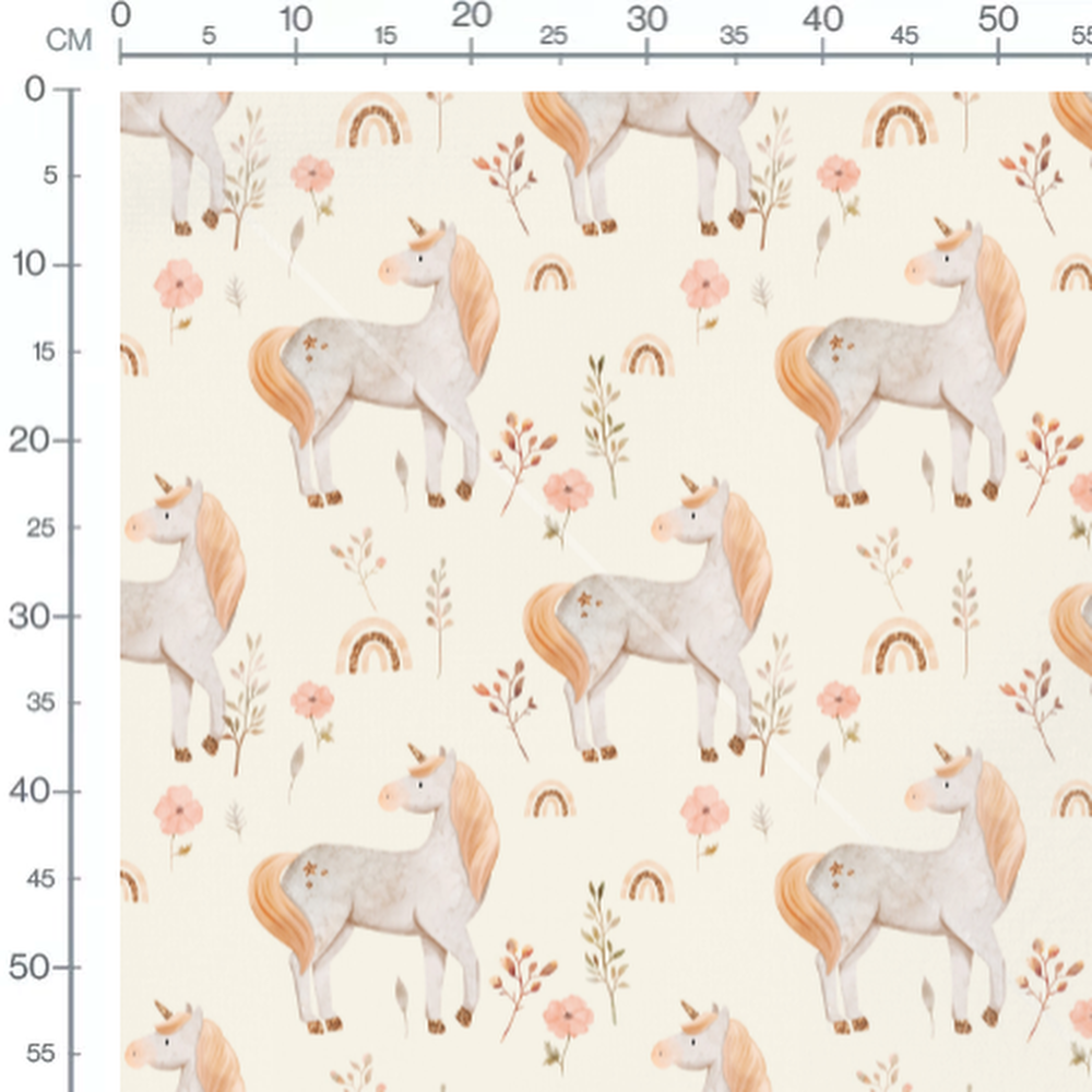 Tissu - Licornes blanches et fleurs pastel