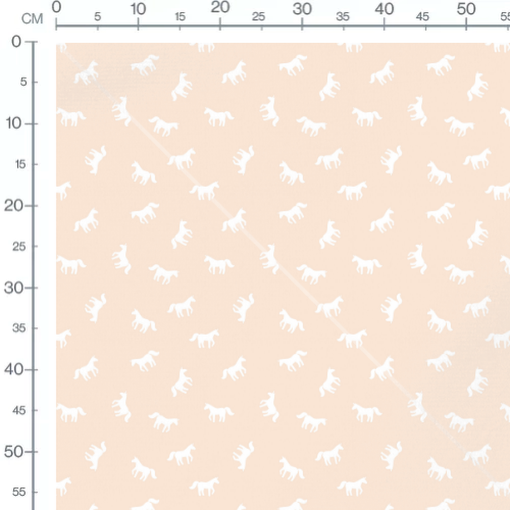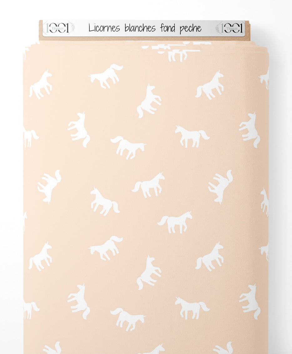 Licornes blanches sur fond pêche. Silhouettes de licornes dispersées uniformément.Les tissus