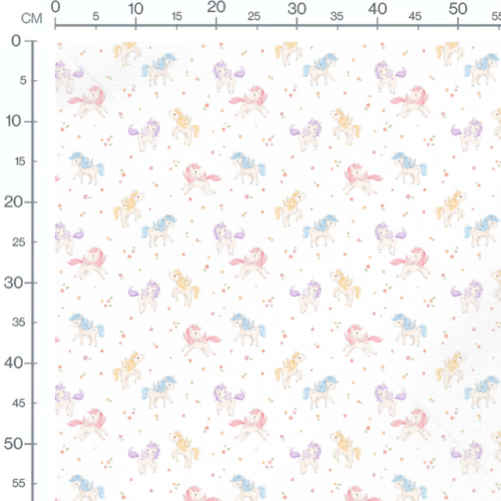 Les licornes ont des crinières roses, bleues et violettes. Les fleurs sont de couleurs orange, rose et verte. Les licornes sont dispersées avec des ailes délicates.Les tissus