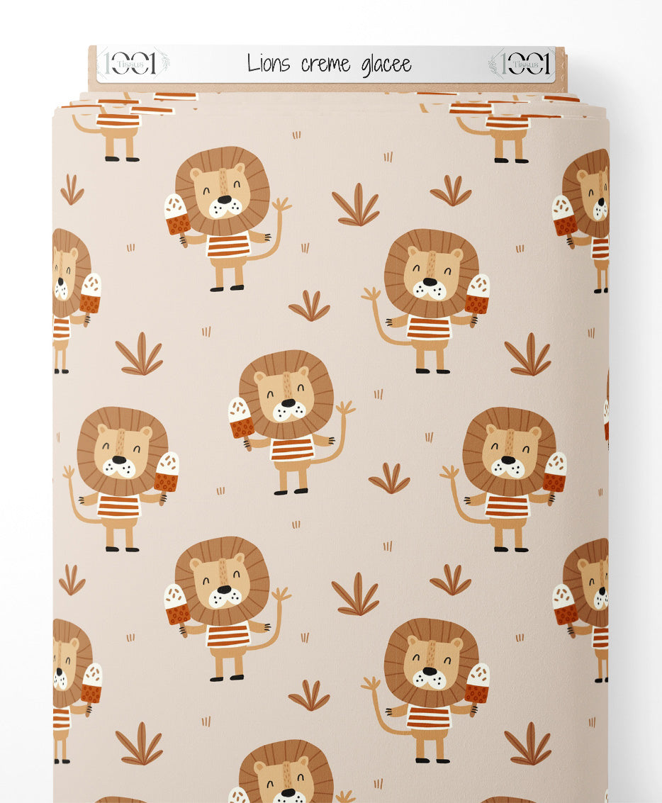 Tissu - Lions crème glacée