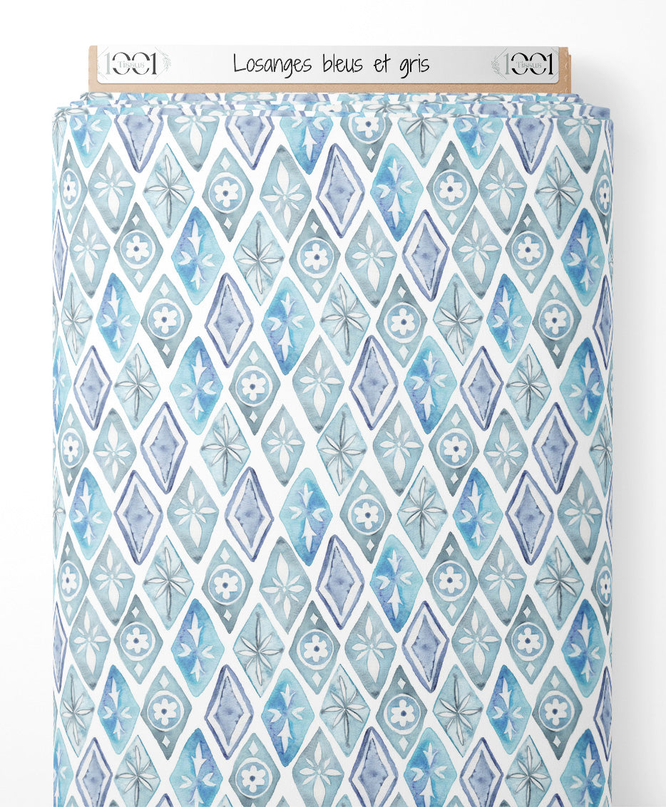 Tissu - Losanges bleus et gris