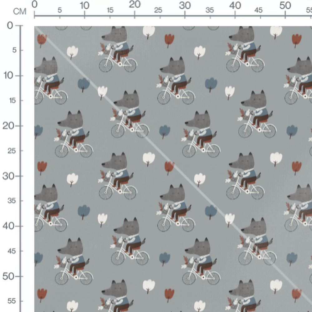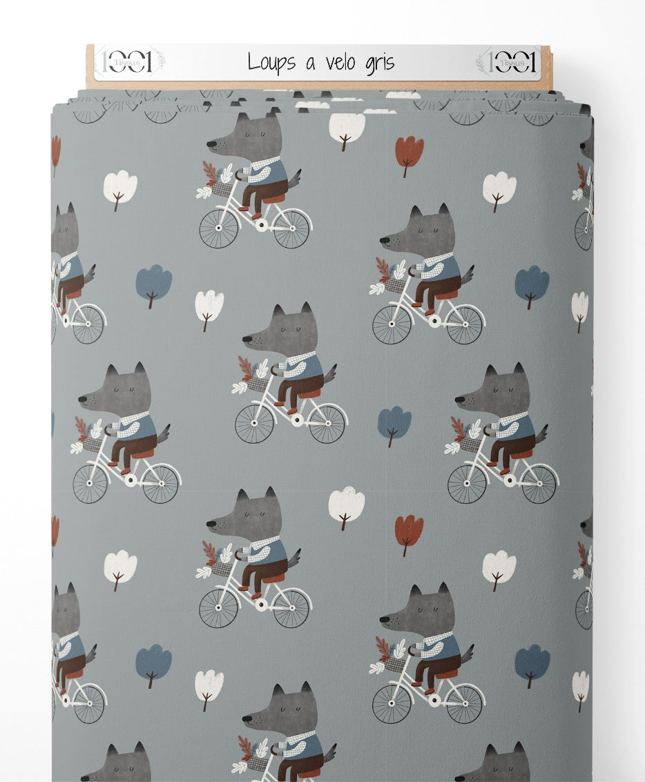 Tissu - Loups à vélo gris
