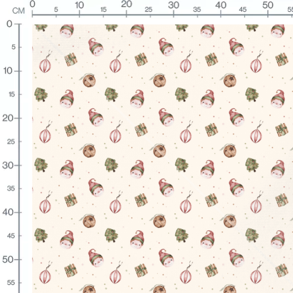 Tissu - Lutins sur fond crème festif
