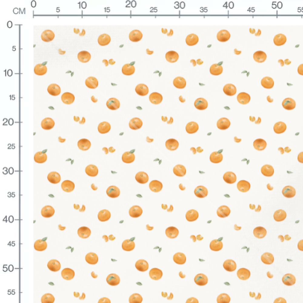 Les mandarines sont de couleur orange vif. Les quartiers de mandarine sont également présents, ajoutant une touche de variété au motif.Les tissus