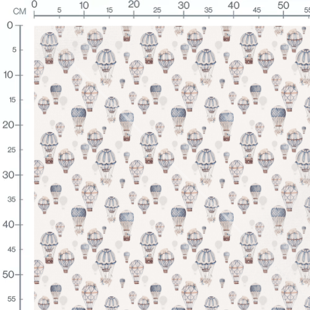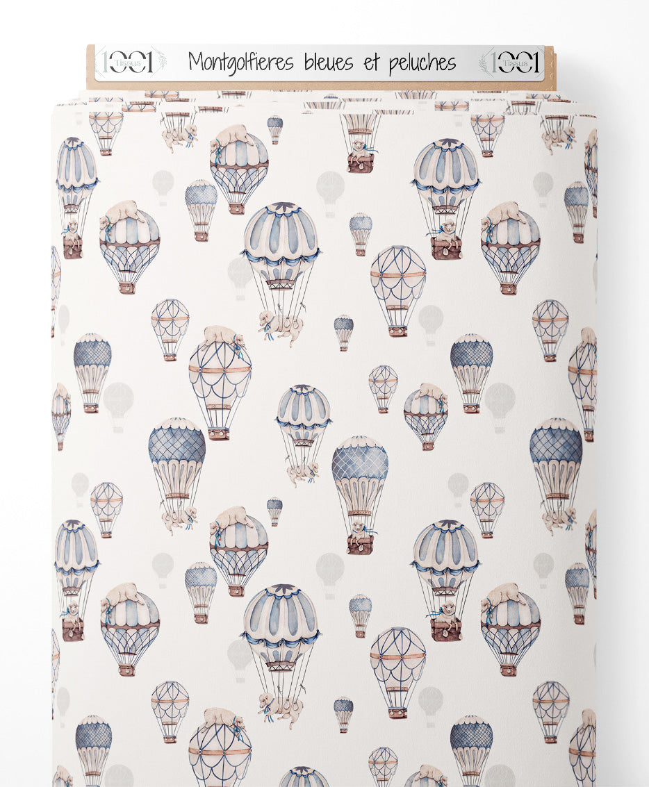 Tissu - Montgolfières bleues et peluches