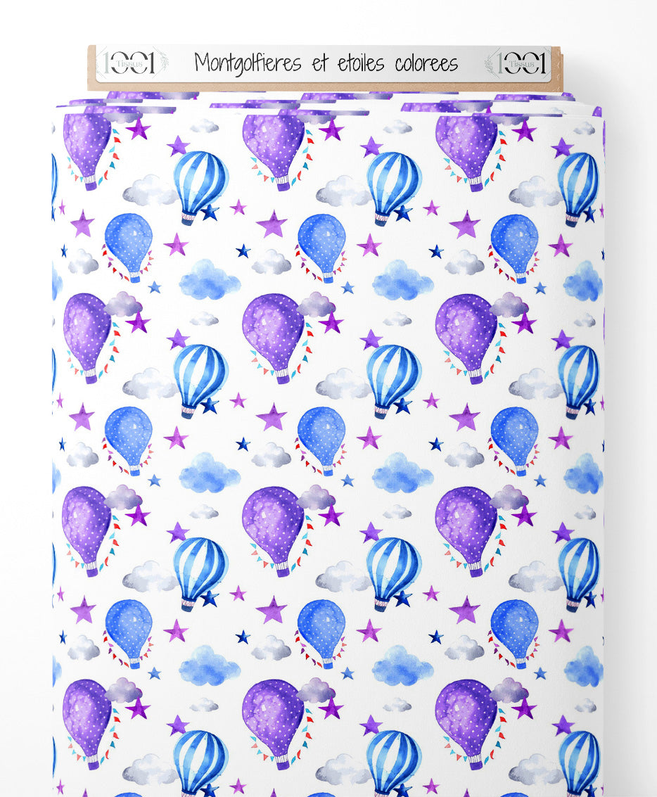 Tissu - Montgolfières et étoiles colorées