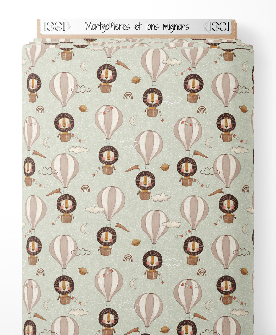 Tissu - Montgolfières et lions mignons